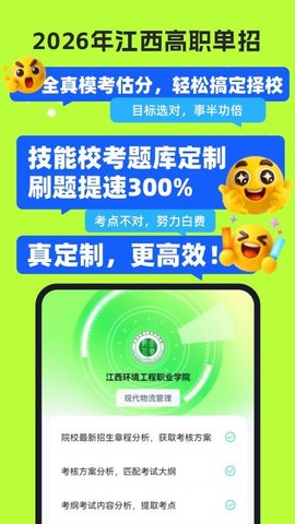高职单招江西版是一款为江西省高职单招考生量身定制的备考工具,整合了全面的学习资料与院校信息,让备考过程更加系统化,考生可以随时查阅最新的考试大纲和复习要点,获取名师讲解的视频课程,利用内置的智能题库进行针对性练习,从而巩固所学知识,软件内的院校数据库详尽清晰,方便考生在制定目标时参考历年招录情况。