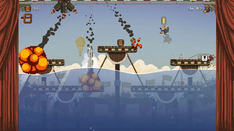 1. 复古像素美术构建出一个氛围独特的马戏团世界,角色造型夸张且富有戏剧感。