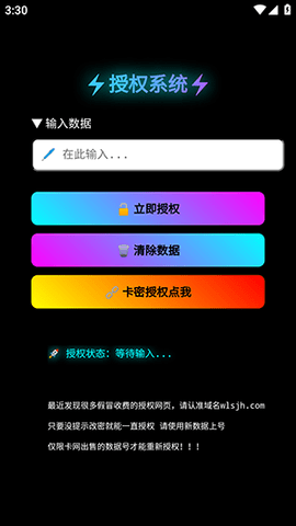 4.缓存清理:如果需要更换另一个数据号,或当前授权过程出现异常,可以点击界面上的清除数据选项,这会重置本地记录,让你重新开始。
