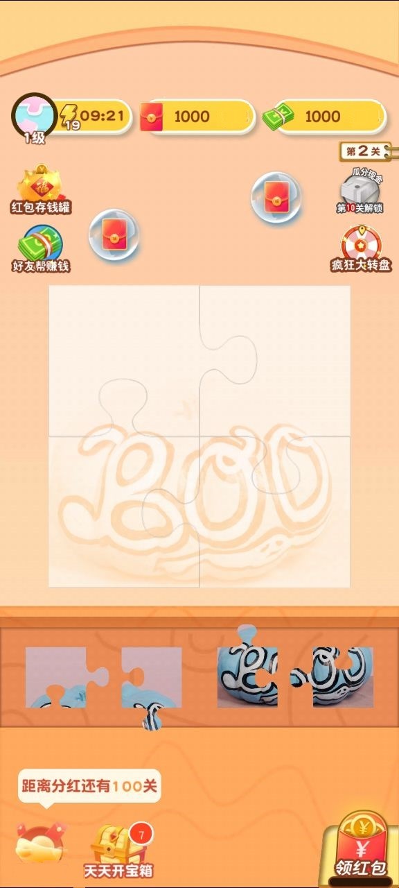 拼图狂想曲是一款将经典拼图乐趣与惊喜红包巧妙结合的手游,每一片碎块的归位都伴随着收获的喜悦,清新的卡通画面营造出轻松愉悦的氛围,关卡设计充满巧思,从简单的图案到复杂的构图,难度循序渐进,让每一次挑战都充满新鲜感,完成拼图后获得的奖励可以直接兑换,整个过程流畅而令人满足。