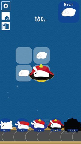 1.核心玩法聚焦于合成与收集,通过滑动旋转网格,将三个或以上相同的兔子寿司排列在一起,便会融合进化成更高级的形态。