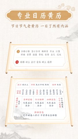 3.传统文化集成:每日呈现老黄历中的宜忌事项,为婚嫁、开业等传统活动提供参考。