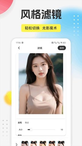 3.图片处理模块包含了丰富的滤镜、贴纸和涂鸦画笔,用户能够轻松地对照片进行个性化修饰与创作。