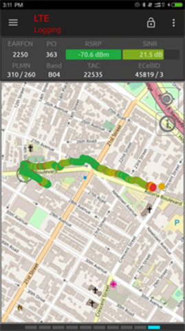 3.地理化数据呈现:测试过程中采集的网络参数可以与地图轨迹同步记录,生成覆盖热力图,直观展示信号强弱分布。
