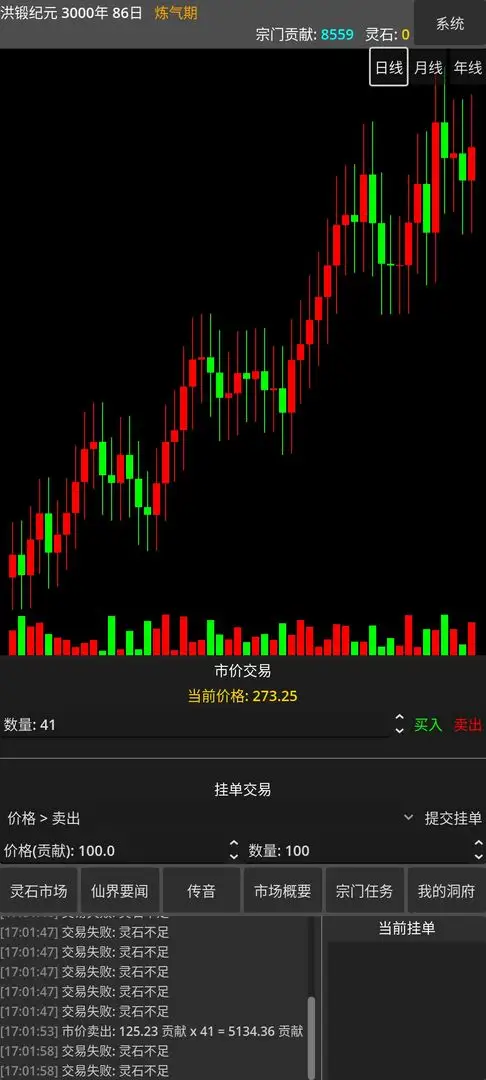 1.市场行情瞬息万变,灵石价格会受宗门大比、秘境开启等随机事件影响,考验你的商业嗅觉与决断力。