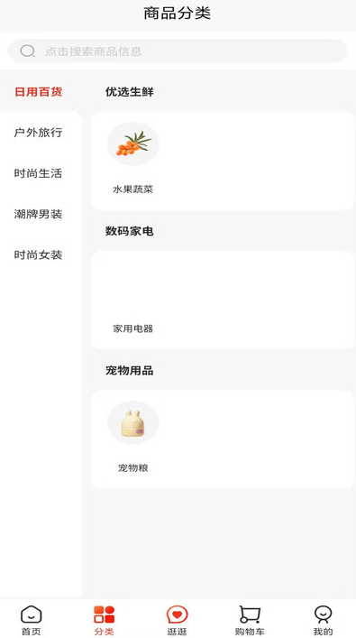 2.浏览与搜索:进入首页后,可通过顶部的搜索框直接查找商品,或在下方的分类栏目中按类别浏览。