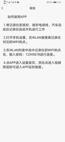 2.网络连接:开启手机Wi-Fi功能,在网络列表中找到记录仪发射的热点(名称通常包含设备型号),选择并输入默认密码进行连接。