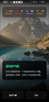 2.行动时注意界面左侧的状态栏,当疲劳度过高时务必选择扎营休息,强行前进会大幅增加受伤风险。