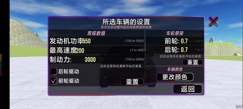 4.专门提供了发动机功率调节滑块,将其推到最大值,感受油门到底时势不可挡的加速力。