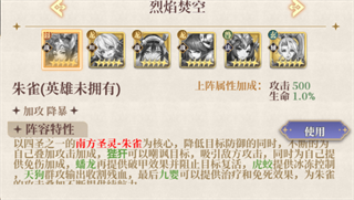 以四圣之一的南方圣灵-朱雀为核心,降低目标防御的同时,狴犴可以嘲讽目标,吸引敌方攻击,同时为自己提自己叠加攻击加成,供免伤加成,蟠龙再提供破甲效果并阻止目标复活,虎蛟提供冰冻控制,天狗群攻输出收割残血,最后九婴可以提供治疗和免死效果,为朱雀的攻击叠加不断提供续航力。