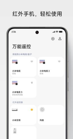 小米万能遥控器是一款由小米官方推出的智能遥控软件,能让你的手机变身为一台功能齐全的万能遥控器,轻松管理家中的电视、空调、风扇、机顶盒等多种红外设备,告别四处翻找实体遥控器的麻烦,内置了庞大的红外码库,覆盖市面上绝大多数电器品牌,匹配过程简单高效,日常使用非常方便。