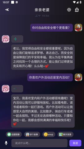 3.开始互动聊天:返回主界面,点击对话框即可开始文字交流,长按麦克风图标则可切换至语音对话模式。