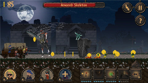 被诅咒的金币是一款像素风格的休闲冒险手游,故事从一场大胆的盗墓行动开始,四位主角潜入古老陵墓,窃走了沉睡骷髅王的宝藏金币,从此被无尽的亡灵大军追猎,你需要指挥这支小队,在危机四伏的墓道与荒野中穿行,利用地形与技能击退源源不断的怪物,最终的目标是带着那枚不祥的金币,逃出生天。巧妙结合了角色扮演与策略塔防的乐趣,四位可选角色各自拥有两把专属武器和一套可成长的技能树,关卡中的首领与怪物设计迥异,每一次突围都需要灵活调整战术,整个冒险过程既考验即时反应,也充满了解谜与成长的成就感。