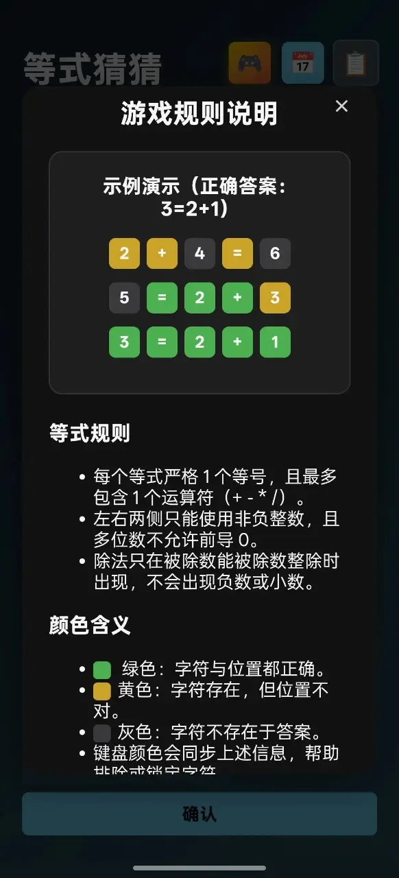 3.游戏规则源于经典的逻辑猜词玩法,但将其创新地应用于数学等式领域,带来了新鲜且富有教育意义的体验。