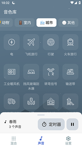 2.动态视觉同步:播放音效时,界面会呈现与声音主题契合的动态画面,播放雨声时屏幕有雨滴滑落效果。