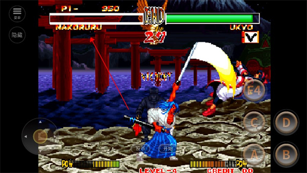 1、下载安装该侍魂2游戏,打开后进入游戏界面,点击投币后再点击“开始”;