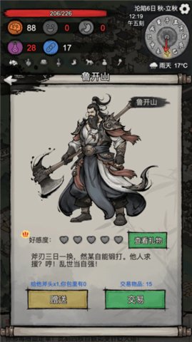 4.社交充满博弈色彩,与其他流民或势力的交往绝非简单的善恶选择,信任与背叛往往在一念之间,深刻影响你的资源获取与生存机会。