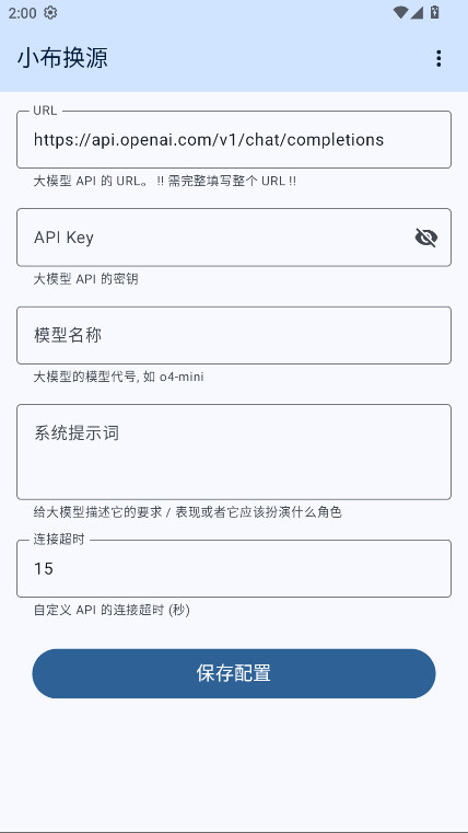 5.保存测试:点击保存或确认按钮,配置即告完成。此时,你可以长按电源键0.5秒唤醒小布,尝试提出一个问题,检验回答是否已来自新配置的模型。
