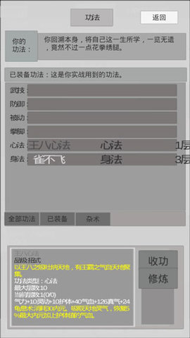 4. 功法修炼要分清主次,装备心法以开启吐纳疗伤功能,再根据遇到的敌人类型,搭配相应的攻击功法与防护身法。