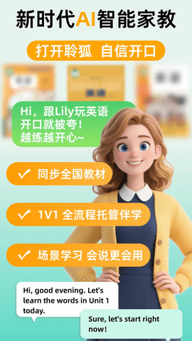 聆狐口语是一款专为儿童设计的英语口语学习平台,提供专业AI虚拟学姐Lily全程互动引导,覆盖全国多种小学英语教材,帮助孩子在趣味对话中轻松学习,平台提供丰富口语训练内容和同步课堂资源,激发孩子学习兴趣。